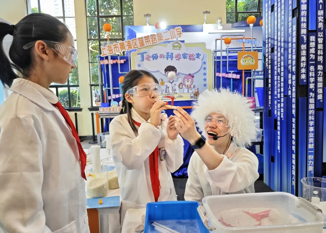 “怎么给大树把脉?”“快到丁老师的科学实验室玩魔法泡泡”……在上海市黄浦区教育局教博会展厅,参观者和师生开心地进行着科学互动。