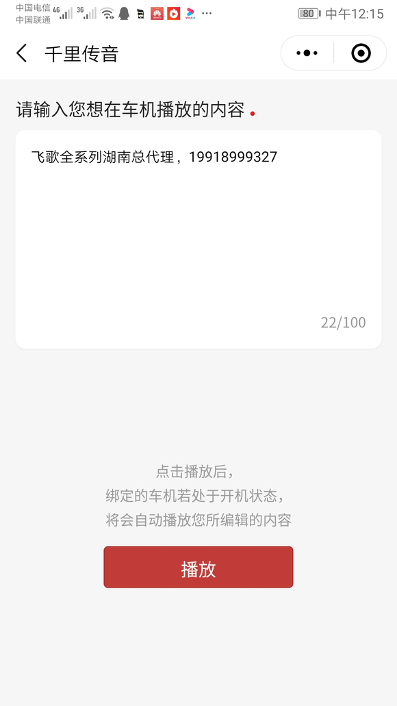 千里传音,这个有点意思,驾驶员可以播放小程序这头输入的文字,驾驶更安全,感觉像BP机,又不能回复