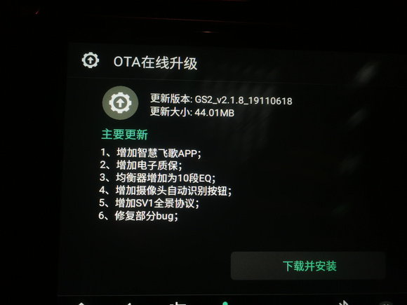 版本为V2.1.8,这个需要通过车机自带的OTA升级,大小为40M左右