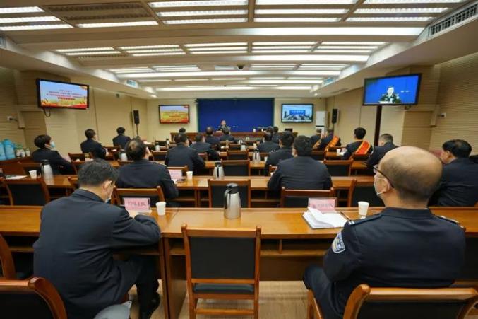 会议以电视电话会议形式开至基层所队。市局在家党委班子成员、机关各部门主要负责人在主会场参加会议;各县分局、局属各单位副科以上领导干部及民辅警代表在分会场参加会议。
