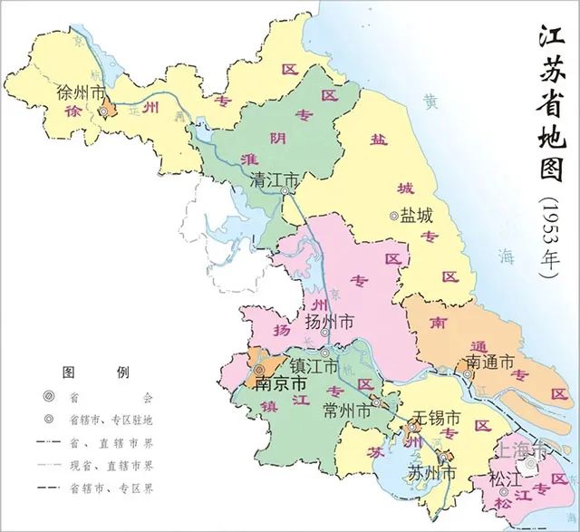 苏州市名义上虽然是省辖市,实际由专区代管,徐州专区、常州专区、南通专区的情况类似。