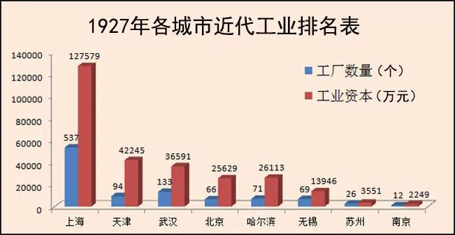 ▲1927年各城市近代工业排名表,无锡居全国第六、江苏第一