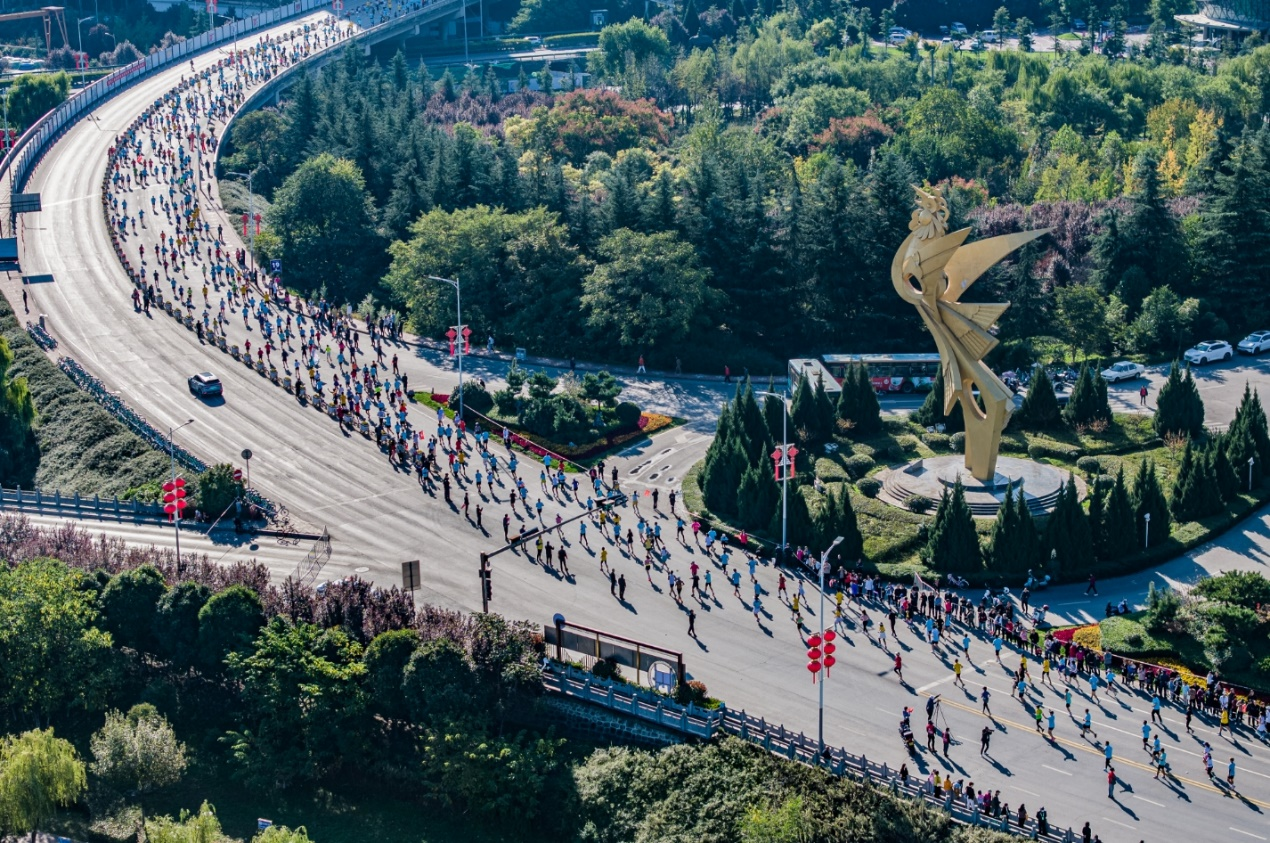 宝鸡古称陈仓,城临渭河、南依秦岭,是炎帝故里、周秦文化发祥地、青铜器之乡,是一片承载着华夏文明精神的千年宝地。它承载着千年的华夏文明精神。这条风景秀丽的赛道全长42.195公里,将选手们引领到一个兼具历史与现代城市之美的探索之旅中。本次比赛赛道途经宝鸡大剧院、炎帝园、周礼文化主题公园、宝鸡民俗博物馆、宝鸡市体育场馆、中华石鼓园、陈仓老街、千渭之会湿地公园等市区重要地标,串联了新老城区,连接了金台、渭滨、陈仓、高新等四个主城区。在赛道沿途,宝鸡市民用热情洋溢的呐喊和欢呼声为参赛选手加油助威。他们站在道旁,手中挥舞着五彩的旗帜,大声鼓励跑者,将整个赛道点亮。市民不仅热情欢迎跑者,还为他们提供清凉的饮品,为跑者增添动力,彰显宝鸡人的热情好客,让赛事更具人文关怀。在比赛期间,2300名志愿者立足岗位,为赛事提供专业高效的志愿服务,以实际行动诠释“奉献、友爱、互助、进步”的志愿精神,为宝鸡马拉松赛的成功举办贡献力量。