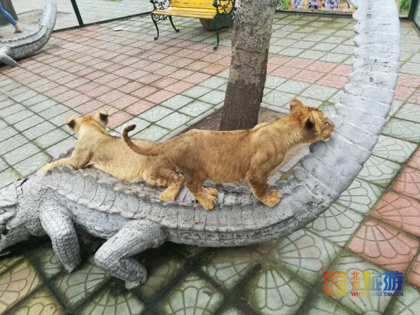 继续往里走,野生动物园里有一条小路两旁开满鲜花,非常漂亮。动物园门口有观光车,5元一张票,如果坐车,应该就看不到这条美丽的开满鲜花的小路了。而且,从门口到坐小火车的地点也没有多远。路上还有各种灵长类动物:猴子、大猩猩、狒狒、山魈等,还可以喂大象,10元喂一次。还可以抱着小老虎照相,20元一次,不过小孩抱不动小老虎,这两只小老虎,看上去很壮实,至少十四五岁以上的孩子才能抱得动。而且是,一个姿势抱着照完相就马上放开,估计抱时间长了,小老虎会不耐烦。