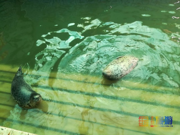 鸽子窝公园其他游玩的项目还有海豹表演,一人10元,实际上就是给游客一盆小鱼,游客自己喂海豹。游客手里拿着小鱼划个圈,海豹会跟着转个圈。广播里还说海豹还会拍手,我们喊了几次拍手,也没见海豹回应,倒是有一次,一只海豹自顾自用鳍拍了拍身子,声音啪啪地脆响,这应该就是海豹的“拍手”了吧。