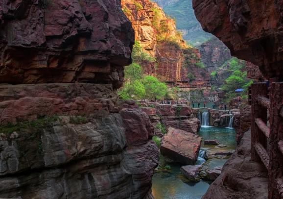 红石峡,又名雄石峡,位于陕西榆林城北,峡谷全长350米,两岸悬崖对峙,东岸崖壁上遗存着众多石窟古寺,西岸崖壁上遍布着巨幅摩崖石刻,悬崖上古长城穿峡而过,广泽渠在石窟内穿行,峡谷榆溪河奔腾不息!