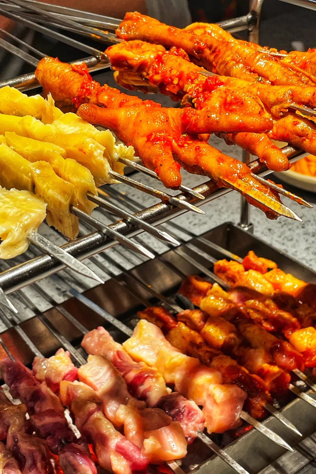 在延边烧烤店里,你更是能够直观感受到东北文化与朝鲜族文化的交融:在这里,你当然能吃到最传统的、用铁篦子网烤的朝鲜族烤肉,但本地人最主流的吃法,其实还是烤串。只不过,延边的烤串,被赋予了朝鲜族烤肉的精髓——炉子上桌,自助烧烤。