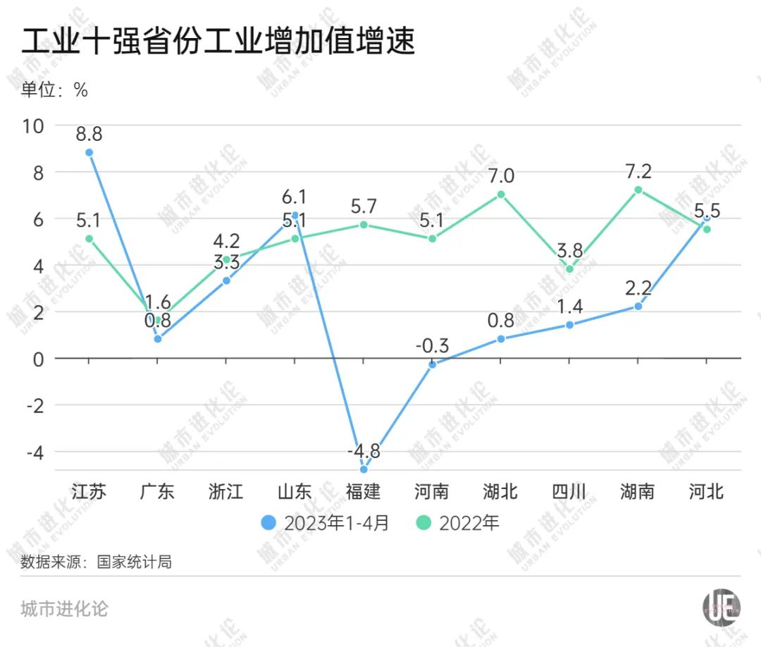 这或许是因为,与前四强GDP和工业实力基本“同频”不同,2022年工业增加值排名全国第五位的,是GDP位列全国第八位的福建。