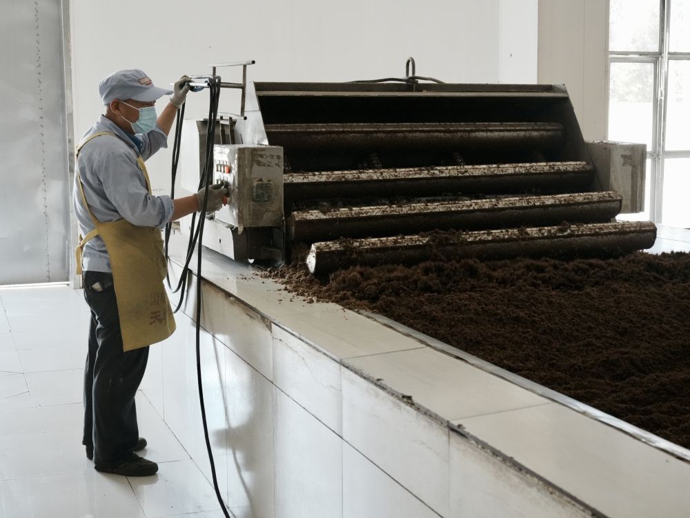 图为岐山天缘醋产业园内工人正在操作自动翻醅机。(新华社记者赵英博 摄)