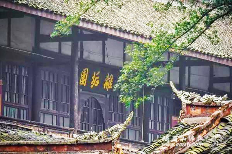 大雄宝殿是清朝顺治八年(1651)年重修的,在殿前有很多长明灯,也叫做佛前海灯,寺宇建筑构成若干个四合院,随意性很强,但有一点很具有代表性的,完全带有川西民居特色的烙印。峨眉山地处盆地西南,受地域文化的影响很大,工匠来自民间,民间建筑与寺庙建筑手法相融,重檐,单檐,歇山,悬山,硬山并用。小青瓦,木皮屋面,素脊,几近院落,一般以主殿"大雄宝殿"为主。