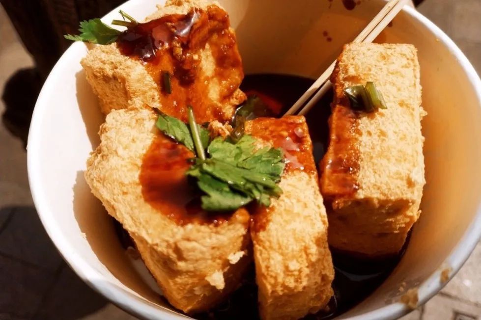 选用新鲜豆腐,炸至外酥里嫩,鲜脆爽口,一口一个,拿在手上边逛边吃刚刚好。