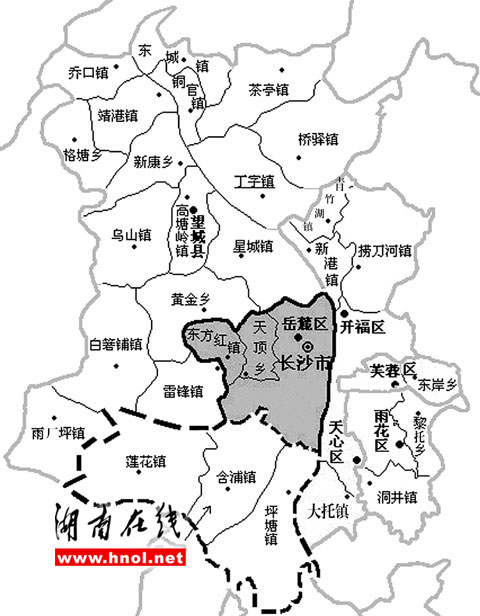 6月15日长沙大河西先导区正式理顺区划范围。15日上午,长沙市先导区举行区划调整交接仪式,望城县含浦、坪塘、莲花3个镇成建制划归岳麓区管辖,而雷锋镇将由高新区管委会托管。据悉,这是自1996年以来长沙规模最大的一次区划调整。
