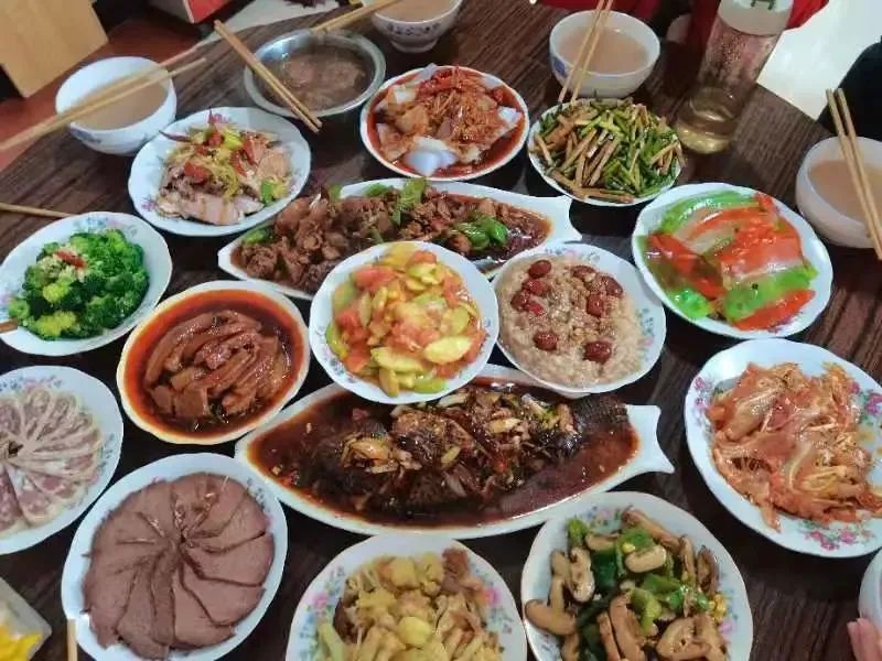 ▲陕西宝鸡人的年夜饭,压肘花,熬皮冻,炸红薯,擀面皮,灌腊肠,蒸甜米。最是家乡味