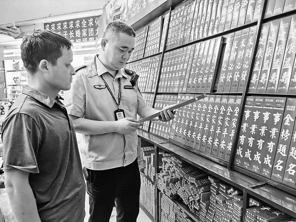 图一:执法人员检查新型环保香是否符合要求及是否明码标价。