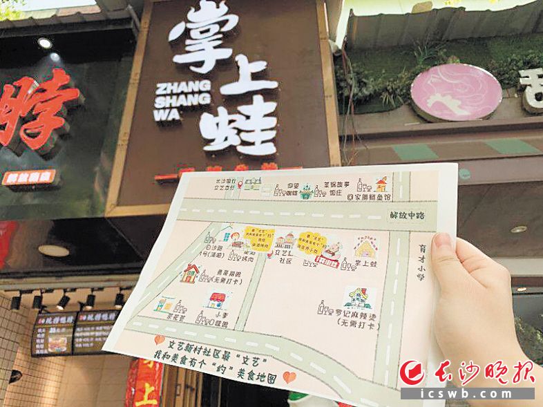 长沙晚报4月8日讯(全媒体记者 周和平 通讯员 徐铭)长沙浏城桥旁的“柒酒烤肉”,烤肉呷货的好去处;“掌上蛙”的老板是个牛蛙达人,数十年如一日专心牛蛙的烹饪……家门口悄悄陪大家一起走过的这些餐饮店,凭社区手绘美食地图可“按图索骥”,不仅有惊喜折扣,还有可能幸运中奖吃上“霸王餐”,这是芙蓉区文艺新村社区“我和美食有个约”最强美食联盟打卡活动向居民们深情发出的“总动员”。疫情缓解后助辖区餐饮门店重振活力,连日来,该社区一纸手绘美食地图引来居民们的围观和响应。