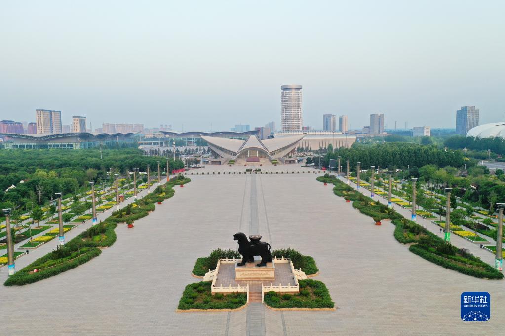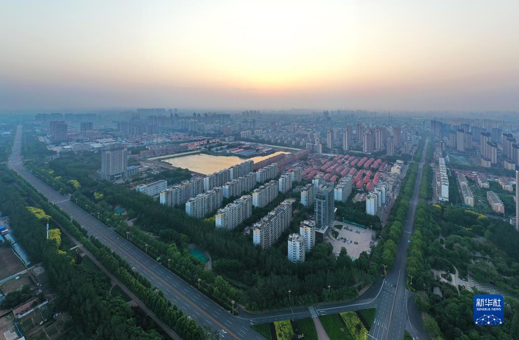 晨光中的沧州市区(5月16日摄,无人机照片)。新华社记者 牟宇 摄
