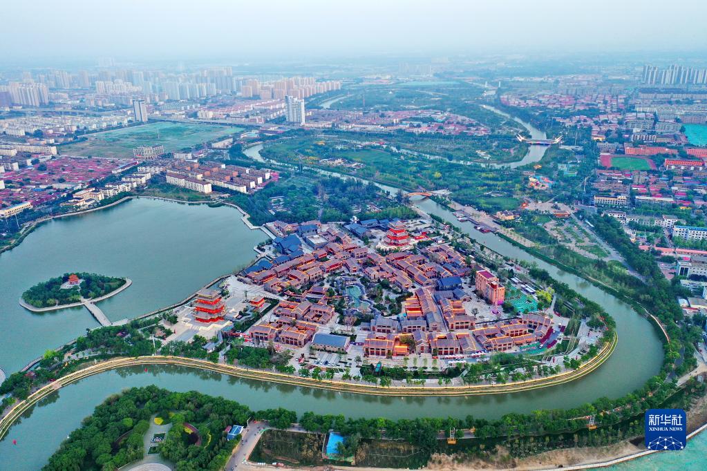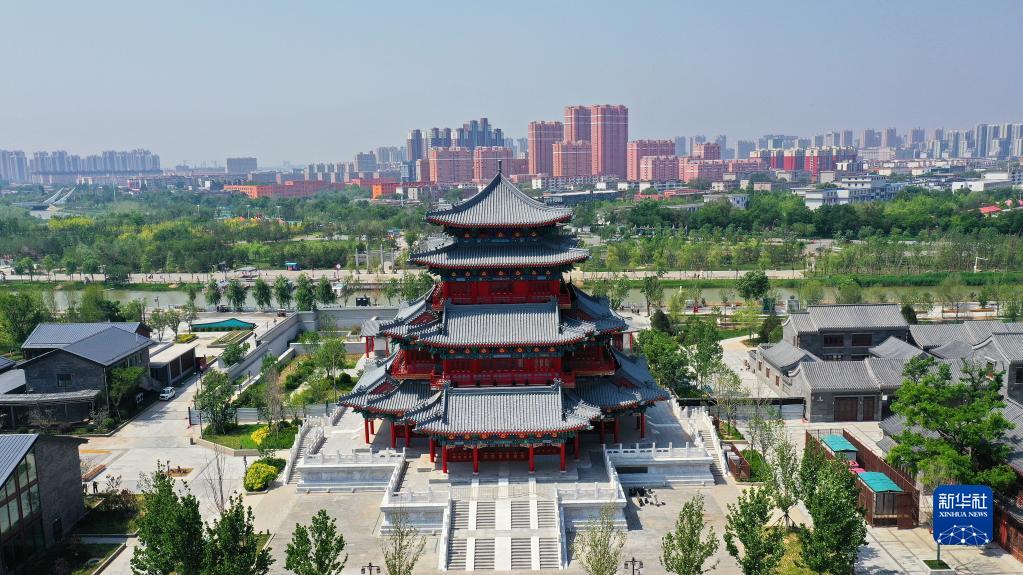 沧州市京杭大运河畔的南川楼(5月16日摄,无人机照片)。新华社记者 牟宇 摄