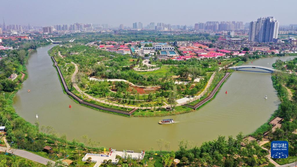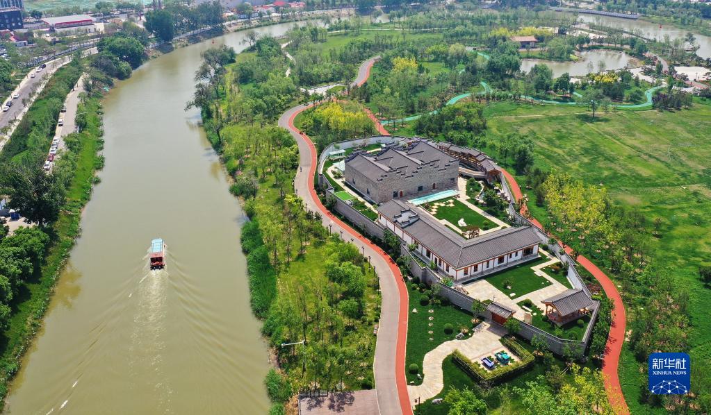 沧州大运河生态修复展示区(5月16日摄,无人机照片)。新华社记者 牟宇 摄