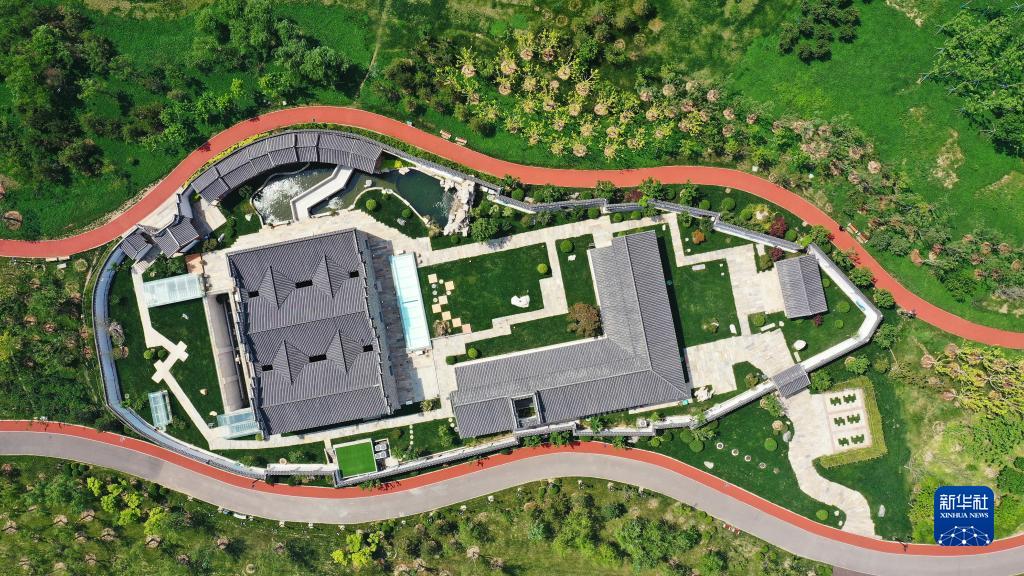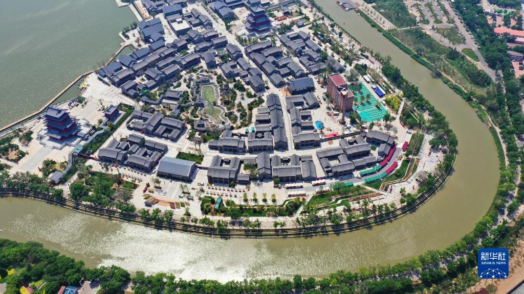 沧州市京杭大运河畔的沧曲书舍(5月16日摄,无人机照片)。新华社记者 牟宇 摄