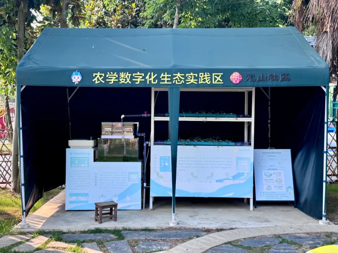 最为关键的是,园子里还有“高科技”。在“农业数字化生态实践区”,从水培管道上长出的绿油油的豆苗,竟是由一套数字智能管理设备养护。而这套设备则是一位资深的传感器专家为孩子们打造。