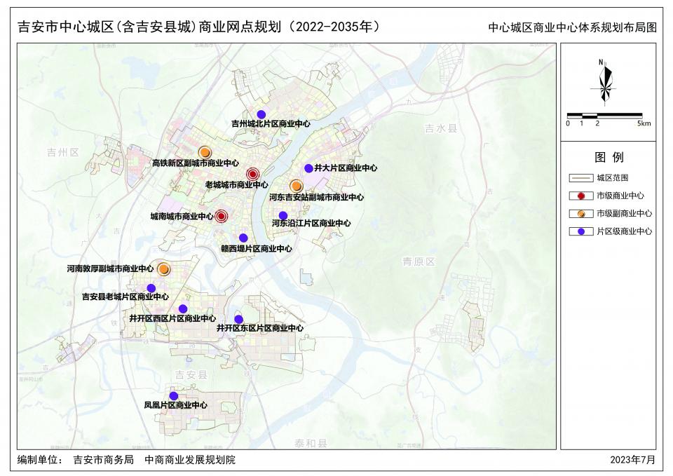 为适应新时代吉安市发展需求,以建设培育赣中区域性消费中心城市,全面推动高质量发展、创造高质量生活,加快建设具有影响力的区域性消费中心城市,指导商业设施合理发展、空间有序布局,吉安市商务局组织编制完成了《吉安市中心城区(含吉安县城)商业网点规划(2022-2035年)》(以下简称《规划》),引导构建与吉安市发展目标相适应的商业空间体系。《规划》已经吉安市中心城市规划委员会2023年度第三次会议审议通过。根据《中华人民共和国城乡规划法》等有关法律规定,现将《规划》的主要内容公示如下: