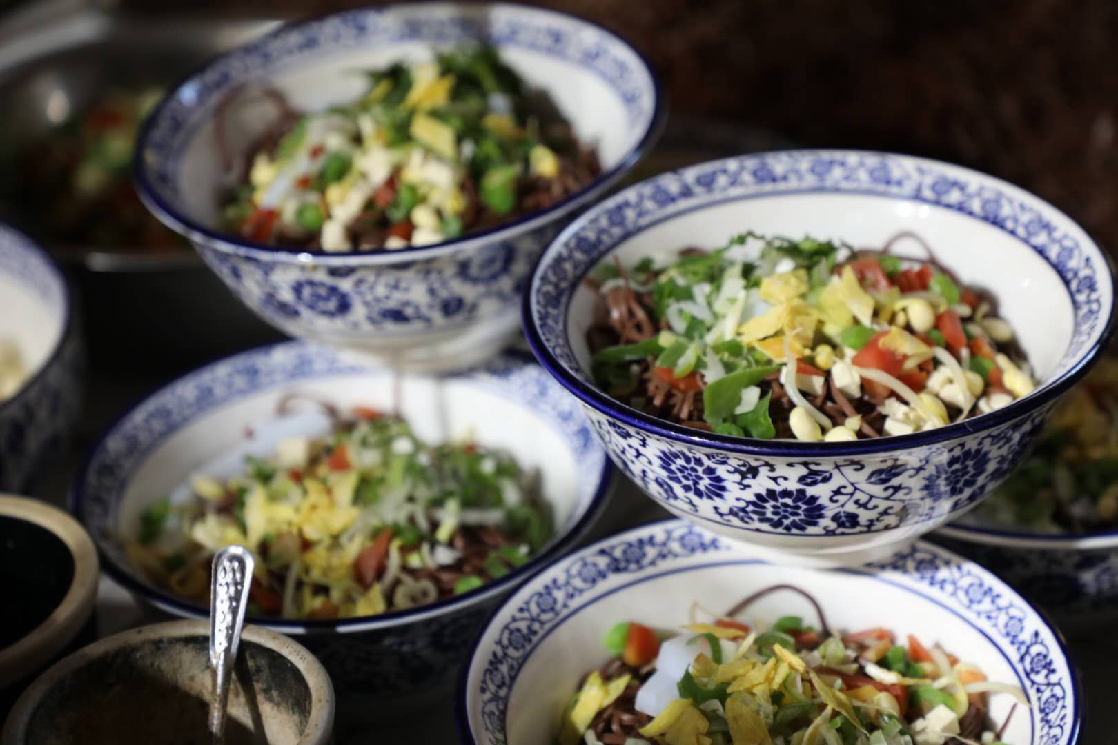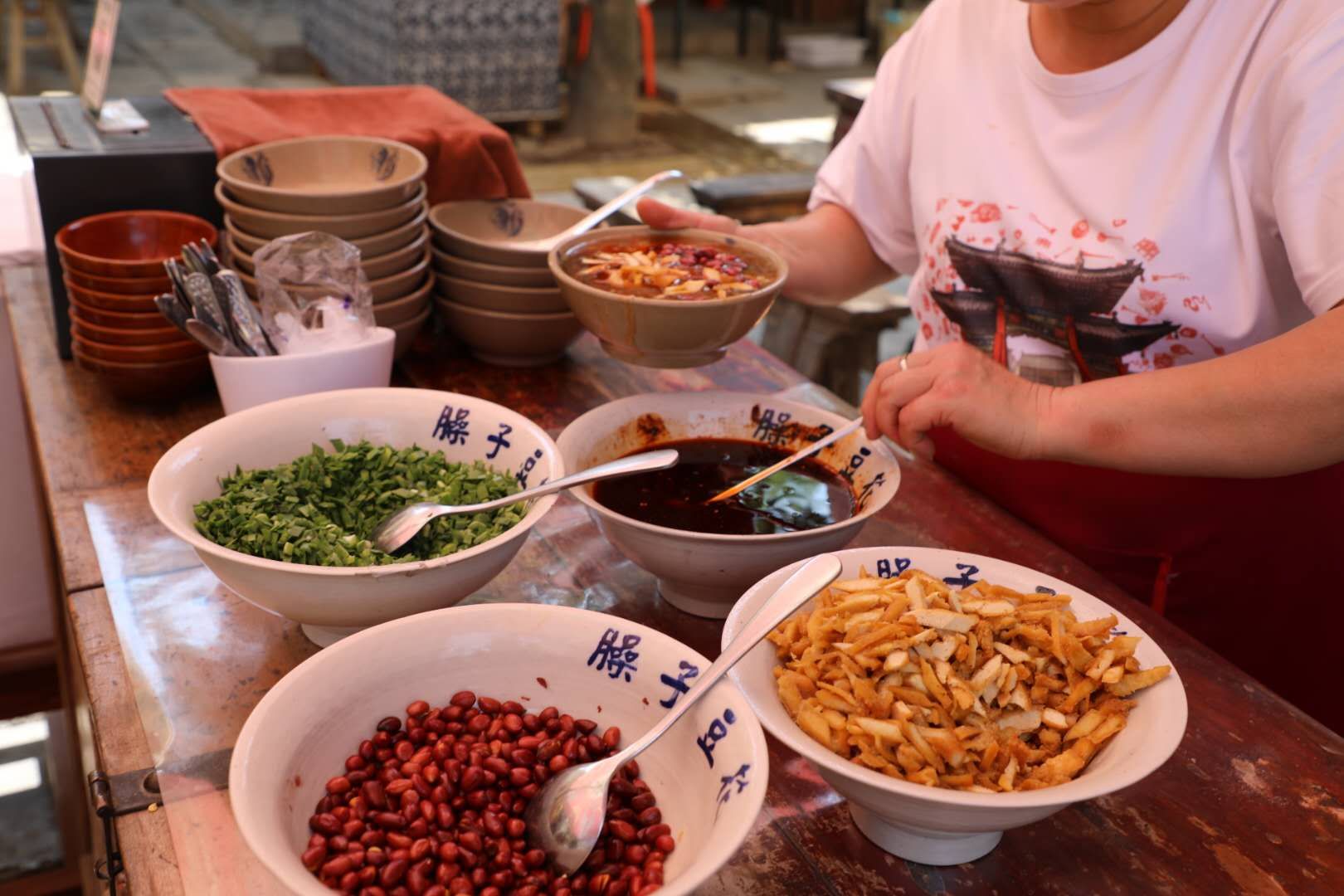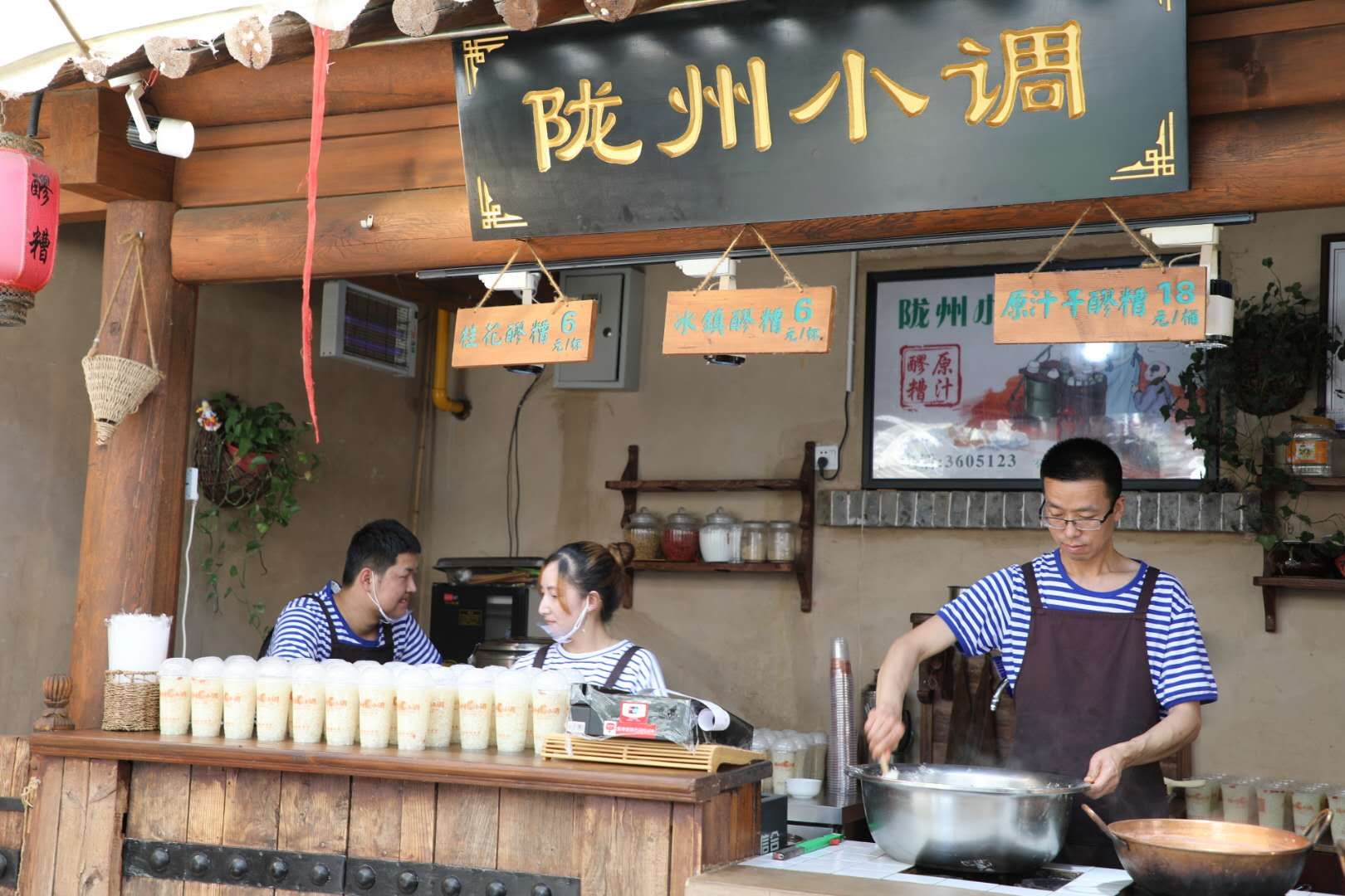 走进老街,我们先后品尝了洋芋糍粑、樊记油糕、蜂蜜粽子、藕粉皮、核桃笏板、手工擀面皮、凉粉、西府合盘、凉拌灰灰菜、岐山臊子面、菠菜面、麟游血条面,光听菜名。就会让你舌尖跌宕起伏、味蕾大开。