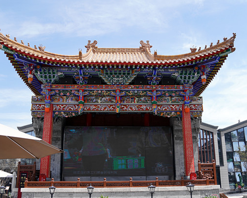 从门楼穿过,游客可以从左右两条街分流而行。在西府老街的中心区域,有一个不大不小的休闲广场,并建有一座戏楼;这是按1:1的比例复建韩城城隍庙戏楼而建的。戏楼侧面有8副木雕,均以西府文化为主,包括有张载讲学、商鞅变法、周公制禮乐、文王访贤、神农尝百草、暗度陈仓、秦晋之好、燕及望鲁。在这里,可以品茶、看戏、听秦腔,找寻到那久远而熟悉的西府韵味。