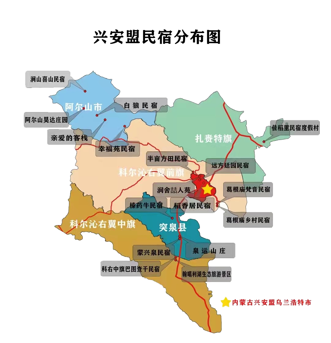 带着与山盟与水盟 与兴安盟的心驰神往,带上家人、带上好友跟着兴安盟地图开启一段不凡的兴安盟民宿之旅吧……