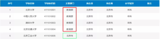 另外,除部属、省属高校外,还有市属院校、部省共建、省市共建等类别。