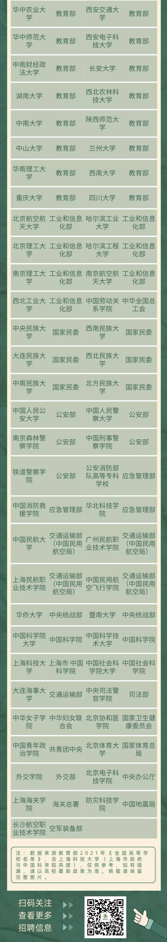 我们在看一所高校的招聘条件时,除了关注薪酬福利外,还要了解高校的综合实力。首先要知道高校的隶属关系。