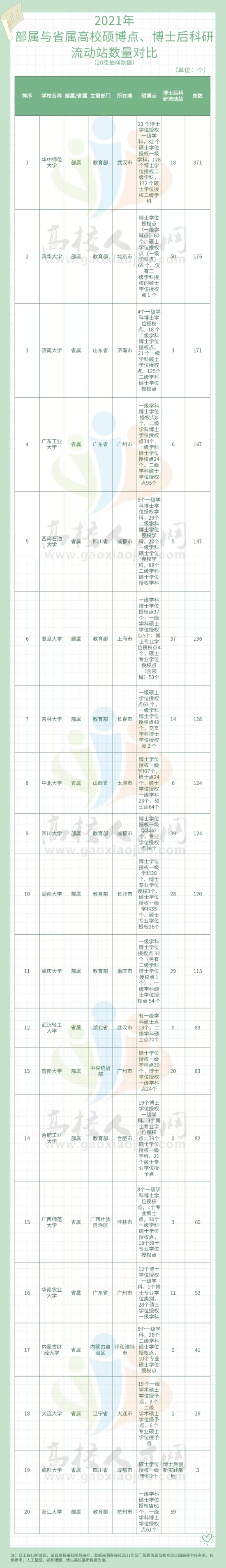 硕博点数量及博士后科研站也是高校综合实力评判标准之一。