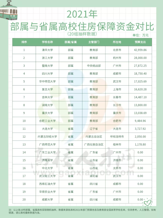 从上表数据来看,部属高校在住房保障方面确实更有“钱”景,且数目不菲。