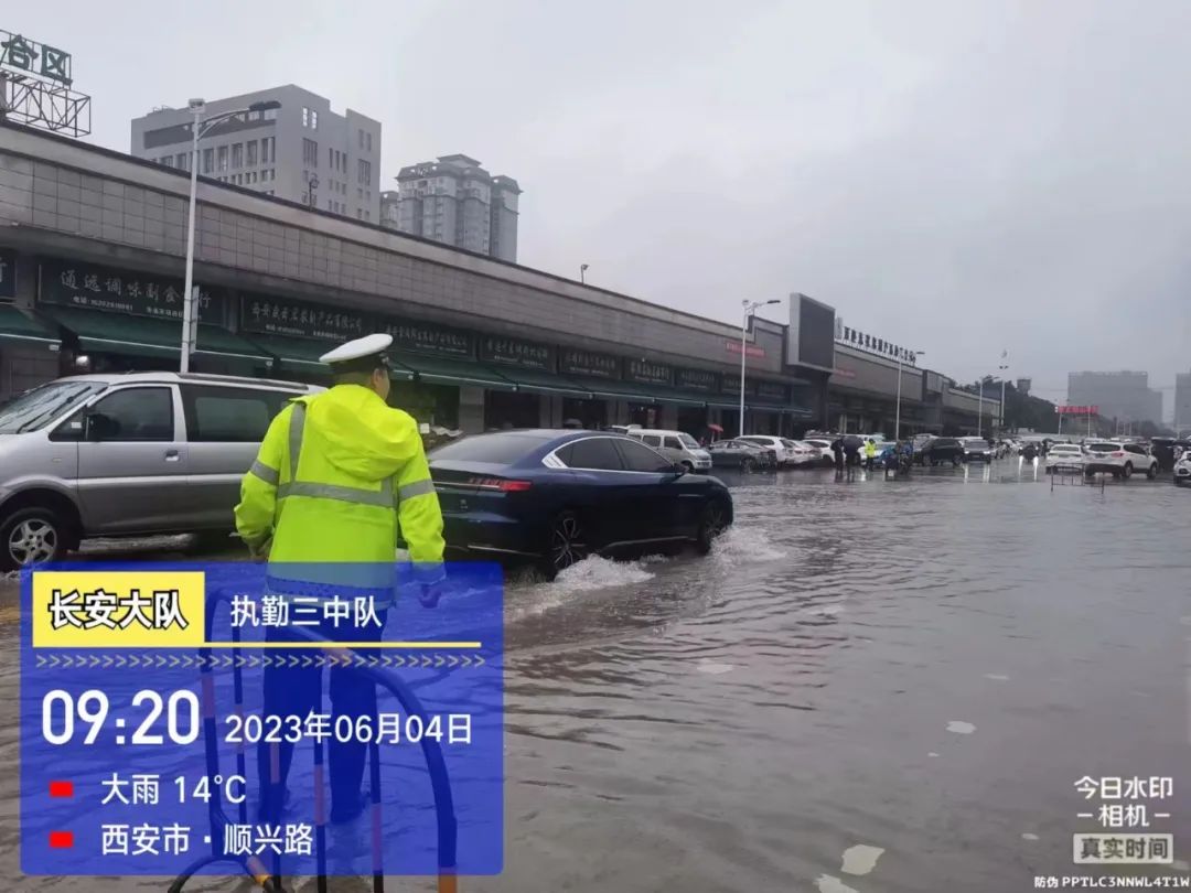 复兴大道沣东一路 、西州大道张旺渠附近、天章大道陇海铁路桥因积水原因暂时封控。