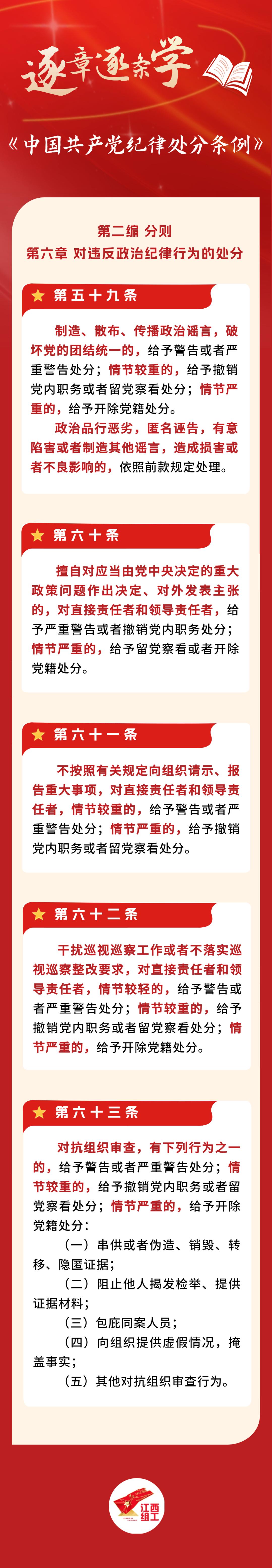 为深入学习贯彻修订后的《中国共产党纪律处分条例》,引导广大党员、干部学纪、知纪、明纪、守纪,“井冈山法院”微信公众号将持续推送《条例》相关学习内容,通过原原本本、逐章逐条和课后小测试的学习方式,推动《条例》入脑入心。