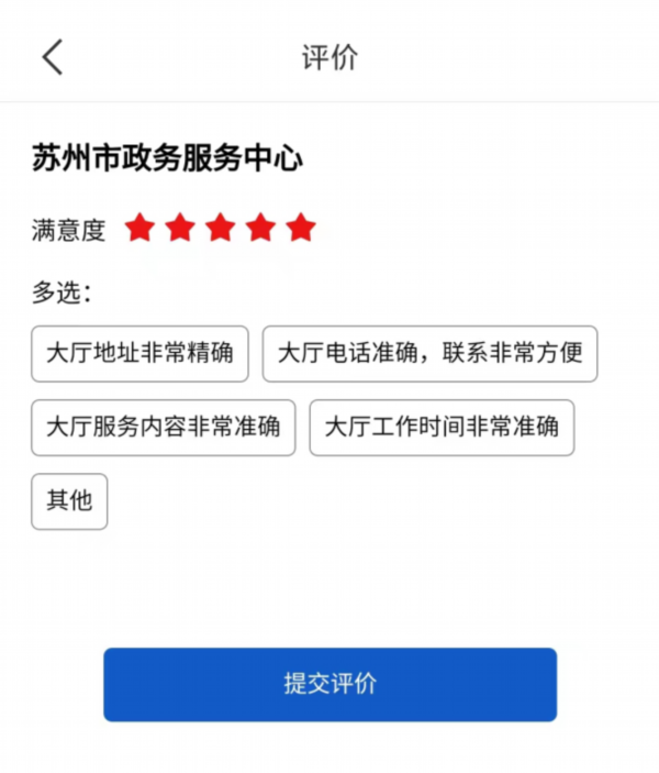 当然,如果对本次使用满意,也可以使劲夸夸办事大厅。