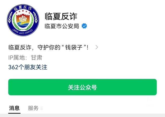 1.关注“临夏反诈”公众号。