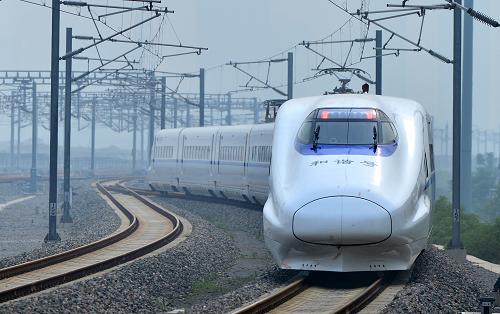 7月1日,西安北至太原南D2012次首发列车驶出西安北站。新华社发(唐振江摄)
