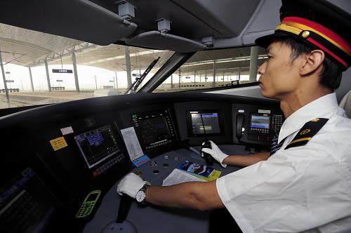 7月1日,大西高铁太原南驶往西安北的D2011次动车驾驶员准备发车。新华社记者 范敏达 摄