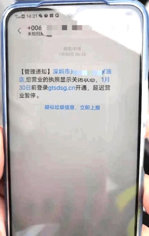 近期,多名群众到深圳市市场监督管理局窗口反映,收到与营业执照的诈骗短信。不法分子向企业、市民发送短信,以“营业执照”异常、过期、失效等为名,诱惑其点击非法钓鱼网站链接,录入个人及银行账号信息骗取钱财。