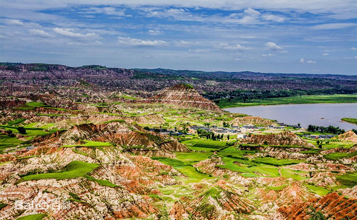 13.府谷县春季乡村休闲游线路:武家庄镇(全国一村一品示范镇)白云乡村万家川古渡→墙头园区墙头村莲花辿雅丹地貌→古城镇油房坪村海红果花