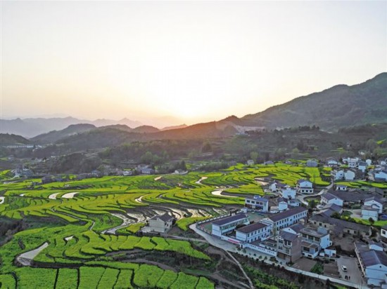 汉阴县漩涡镇,梯田花海中的美丽乡村。