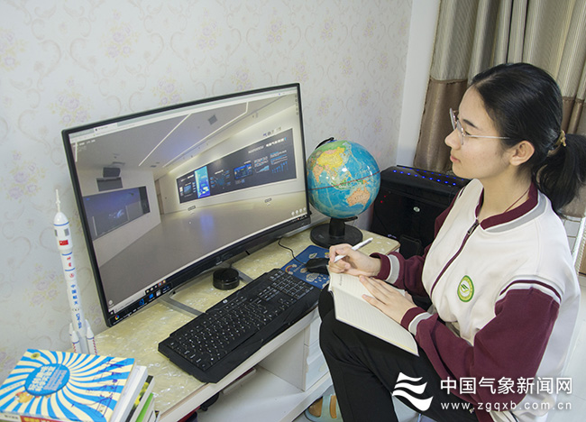 3月19日,河北省唐山市第二中学高一年级的王嘉宁同学在家中参观了中国气象科技展馆的数字展厅。图/文 王明生