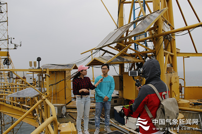 3月19日,广东省茂名市气象局气象主持人在距离岸边6.5公里的海上观测平台上,通过微博开展了一次别开生面的海上气象科普。图/张怿 文/赖建明