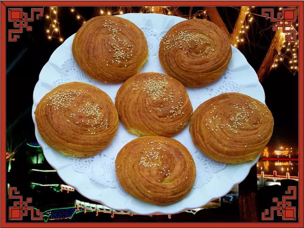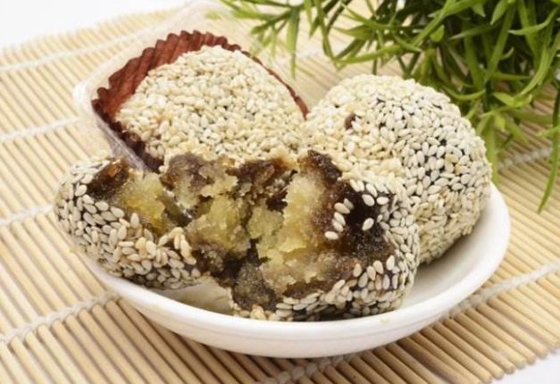 闻喜煮饼形似圆月,外裹芝麻,滚圆状,内有栗色、绛白二色分明的饼馅,可拉出几厘米长的细丝,吃起来酥沙香甜、不皮不粘不腻,久不变质。