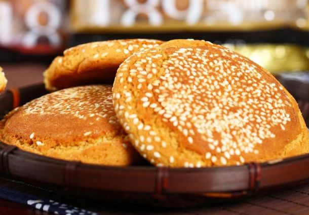 太谷饼是山西省太谷县汉族传统饼类名点,因产于太谷县得名。太谷饼具有甜而不腻、酥而不碎,味美鲜香等特点,以其香、酥、绵、软而闻名全国,享有“糕点之王”的美称。