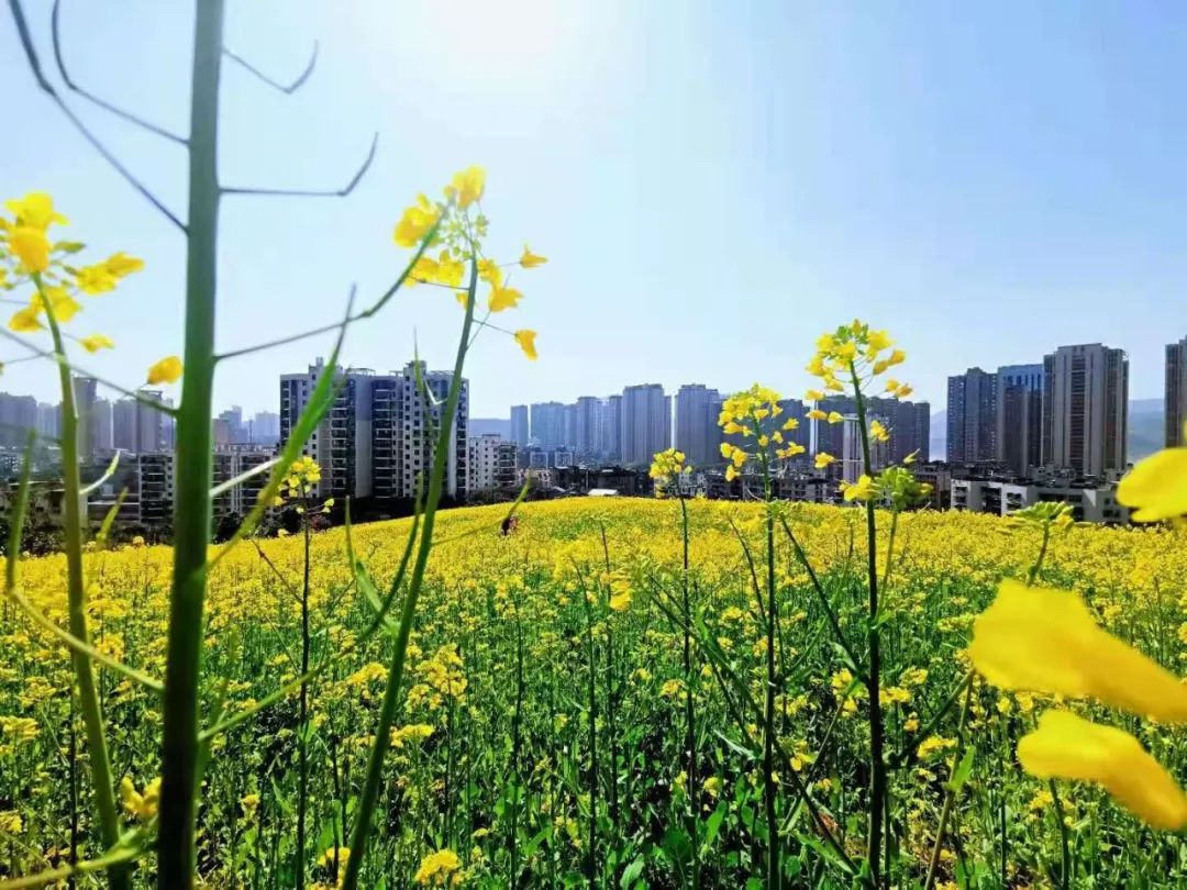 伴着三月春风,连片的油菜花随风招展,竞相绽放,汇集成一片花的海洋。春日山野有了油菜花的点缀,变得尤为多彩。