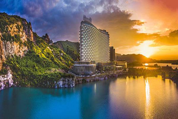 湖州太湖龙之梦钻石酒店紧邻70米深蔚蓝矿湖,以“天下粮仓”为设计理念,集自然、历史、人文之大成,为游客提供独特的度假体验。酒店打造11米挑空、逾2000平米大堂,游客可近距离观赏珍稀金虎;同时配套1000座钻石演艺啤酒吧,游客可观演艺、享美食、品美酒,欣赏太湖美景。