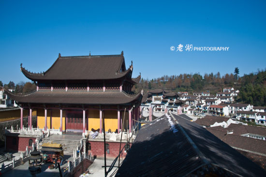 我们去的第一站就是九华山的开山之寺——化城寺,化城寺现在也是九华山历史文物馆,几乎所有的游客必到此地。门前一个很大的广场,广场与寺庙之间是一个很大的水池——放生池,池内有许多放生的金鱼和乌龟。相传401年天竺(古印度)僧人来此,最早建了一个庵堂,后来寺额曰“化城”,金乔觉99岁圆寂后,化城寺被辟为地藏道场。后多次被扩建、修缮,主持还被朝廷赐以紫衣,化城寺遂成为“九华诸寺之冠”,成为总丛林。