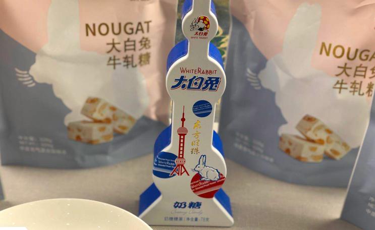 还比如,这个东方明珠大白兔奶糖礼盒,将东方明珠经典地标与大白兔奶糖这个经典品牌相融合,非常上海!