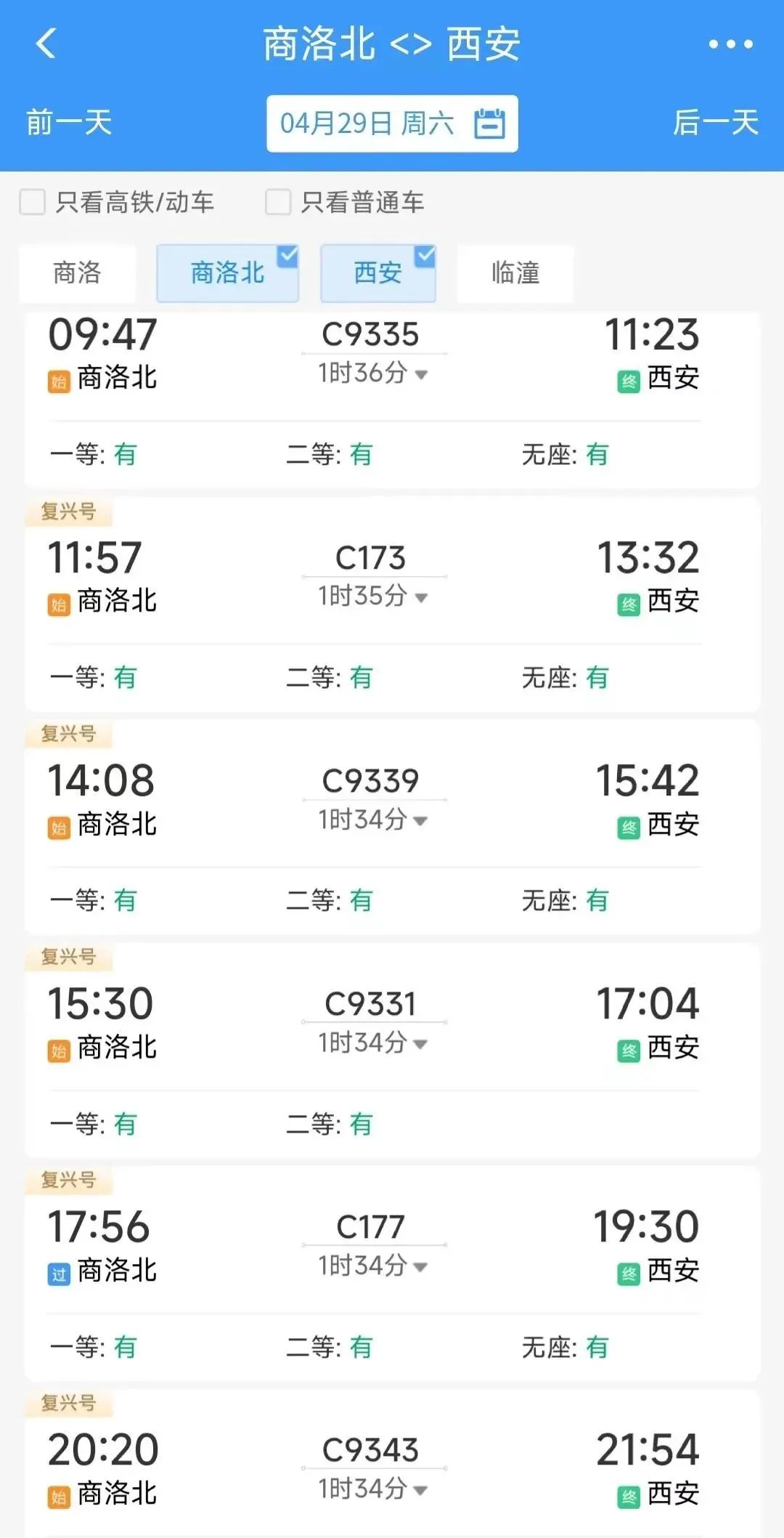 商洛北09:18到